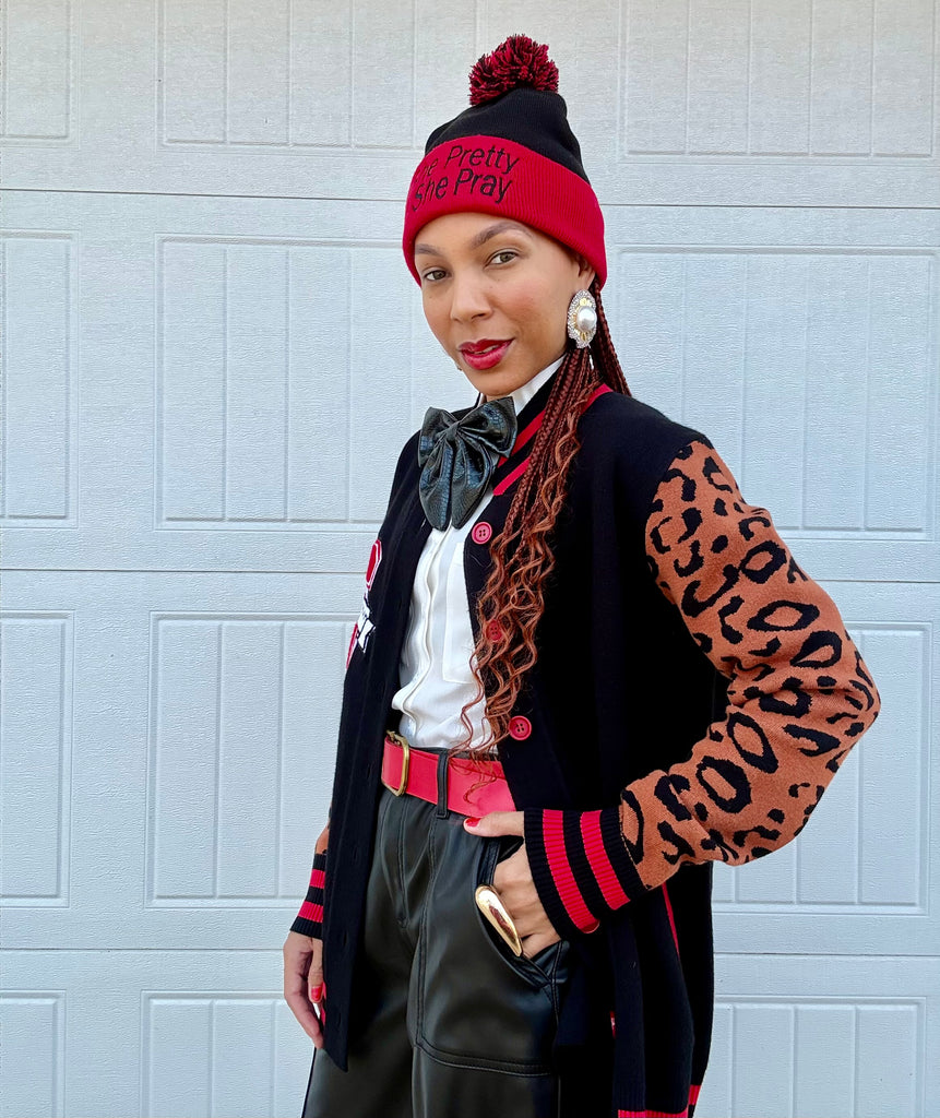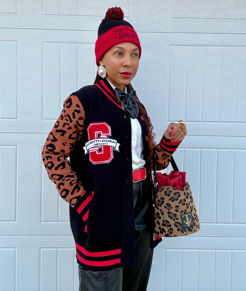 (PRE-ORDER) She Pretty+She Pray®️Varsity Cardigan-Ships December 2025